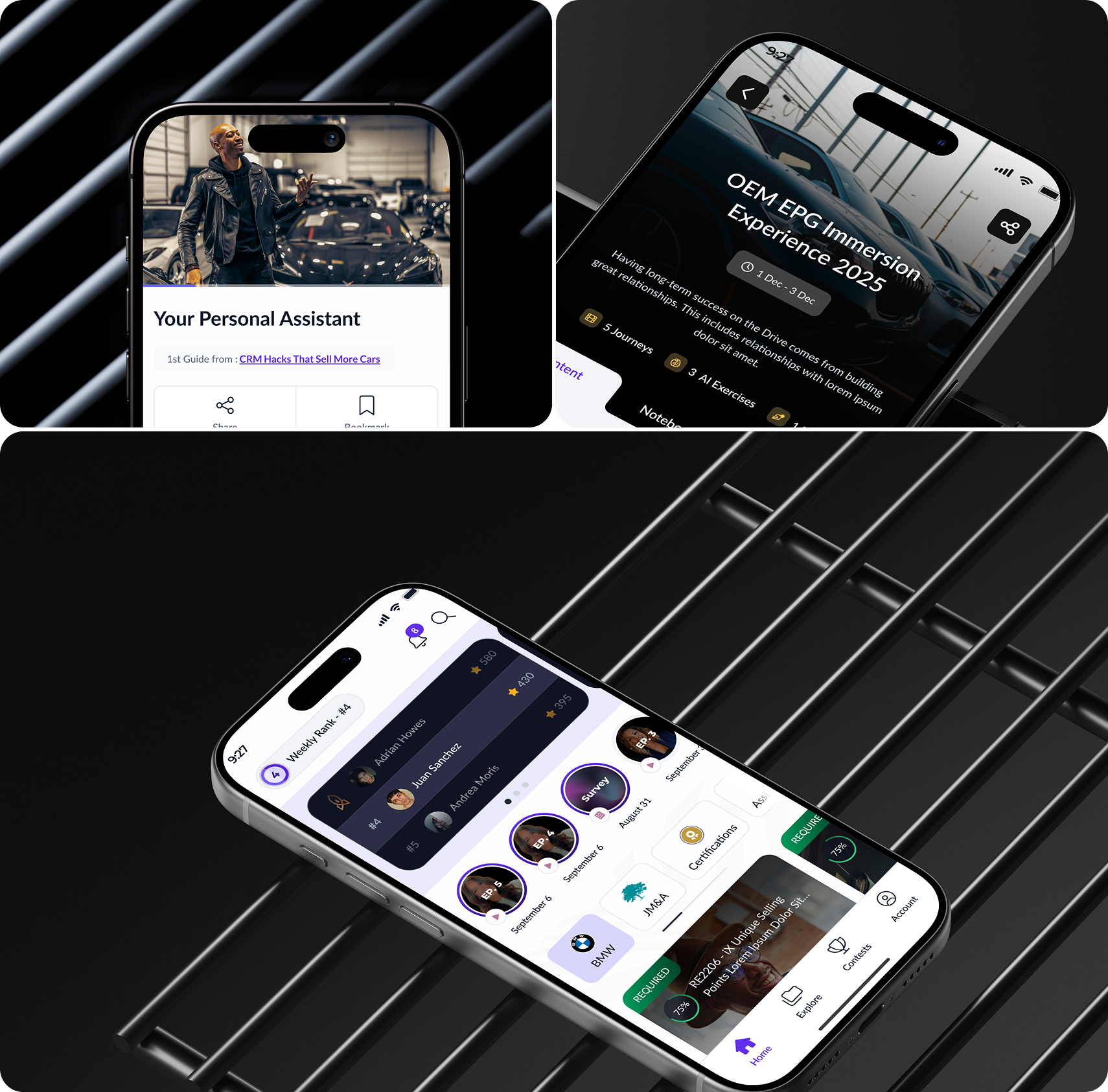 - Multiple learner roles (sales reps, managers, dealership leaders)