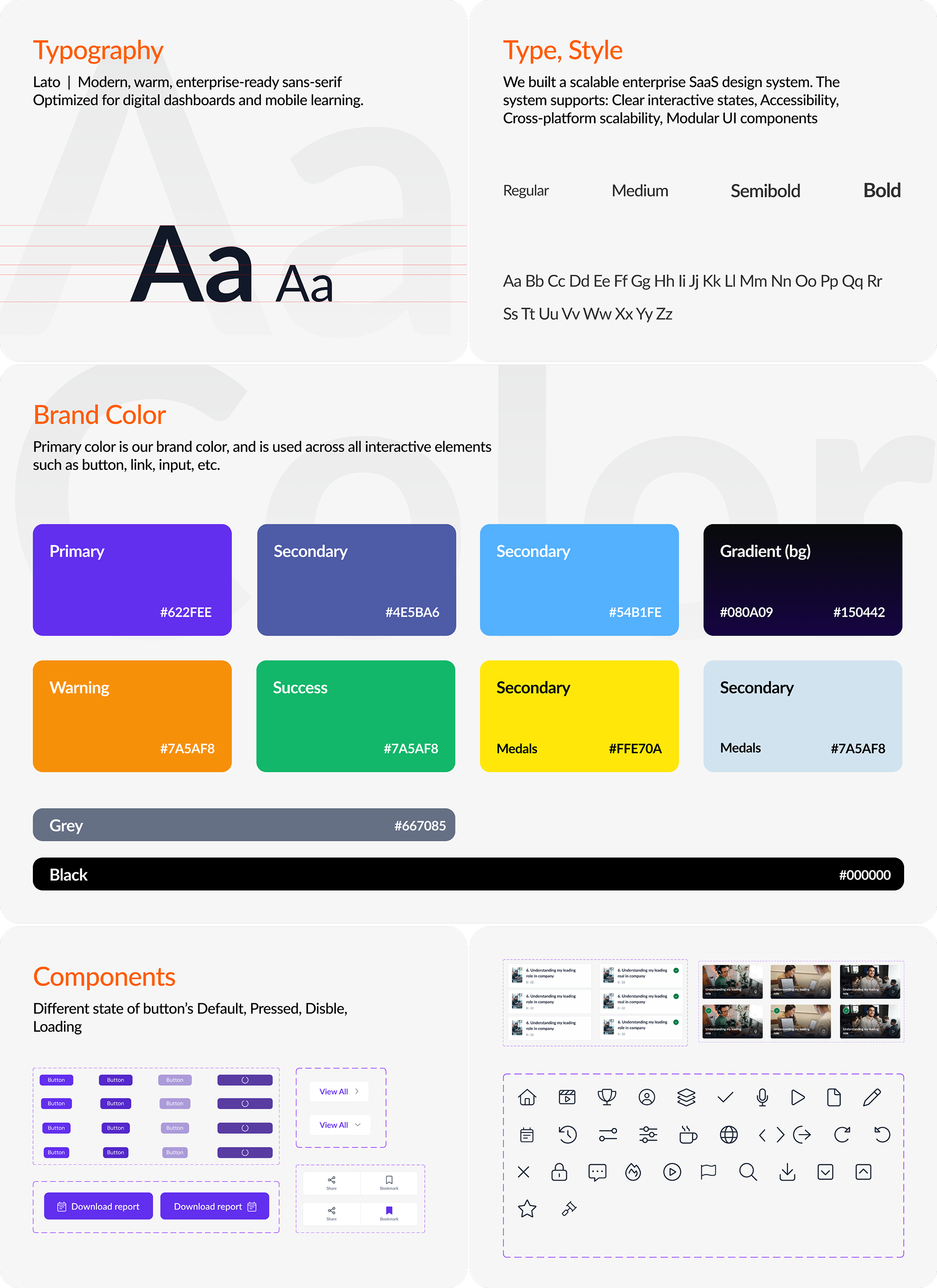 Modular widgets, structured learning paths, and milestone indicators ensured users always knew what to do next and how far they had progressed. The result was a high-clarity enterprise dashboard that encouraged daily engagement and continuous learning across mobile and web.