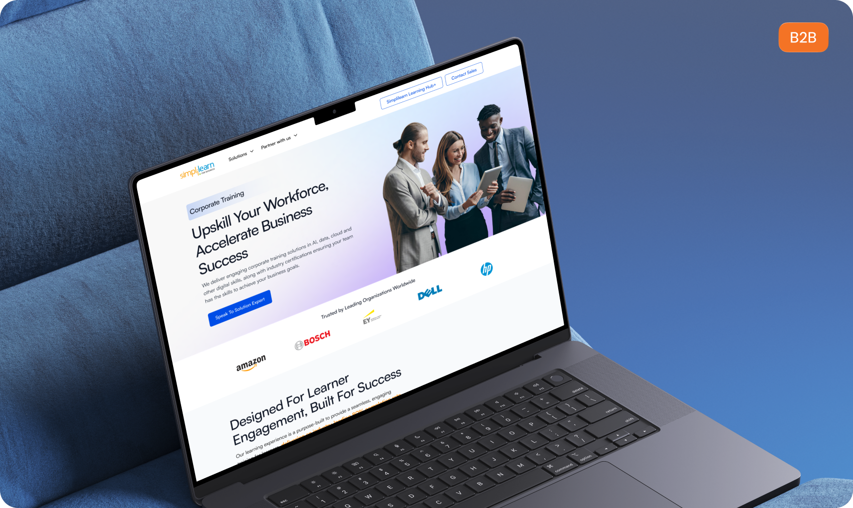 Simplilearn needed to manage high course volumes, complex certification pathways, enterprise sales journeys, and diverse learner personas without overwhelming users. Conversion optimisation for course landing pages, seamless cross-device learning, and enterprise dashboard clarity were critical.